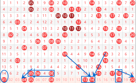 下图为01-20号数字区间走势分析图: