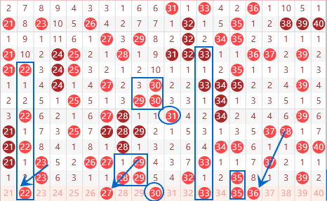 下图为21-40号数字区间走势分析图: