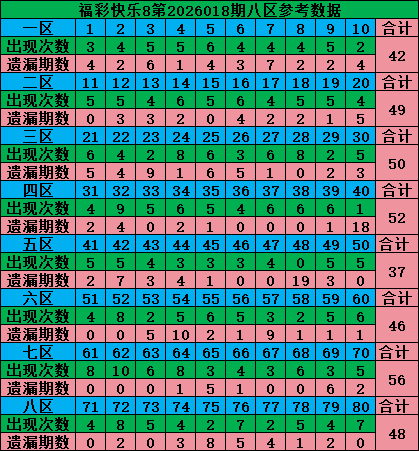 最后再把号码分为四区:一区01-20号、二区21-40号、三区41-60号、四区61-80号,理论上每个区每期应该开出5个号码: