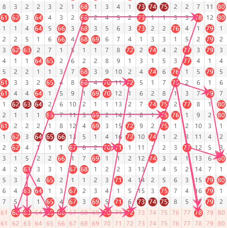 四区分析:【61-80】(走势图标注号码非小黄车大底,请谨慎参考,具体思路将在直播间分享讨论)