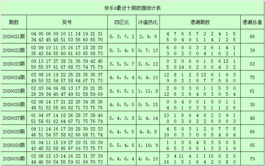 一、快乐8第2026031期奖号分析(定义:遗漏0-2期号码为热码,遗漏3-6期号码为温码,遗漏7期及7期以上号码为冷码,重码为上期开出奖号,邻码为上期没有出现,但与上期奖号差值为1的号码,例如上期开出奖号04,没有出现号码03和05,则本期03和05都为邻码,其它则为孤码。