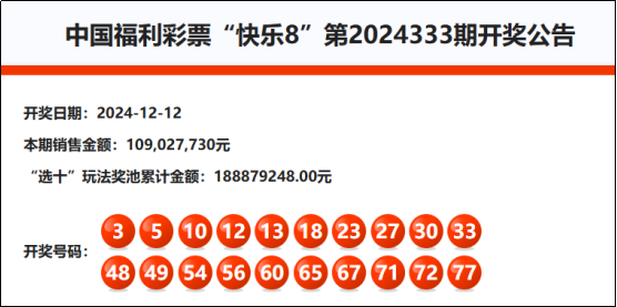 首先我们先来回顾快乐8第2024333期开奖号码: