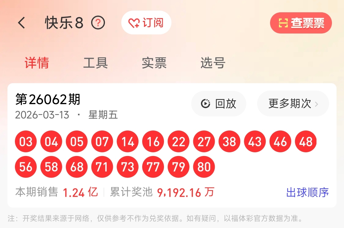 欢迎各位多友,我是浮星光,来到快乐8第2026063期开奖号码走势分析。让我来给大家分析一下本期快乐8的开奖号码的走势,分析选号。预祝各位多友行大运,一击命中,成功登顶!