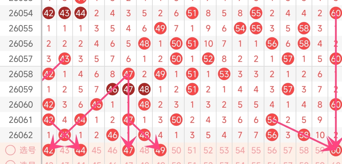 三区号码在近期的开奖中,大数字号码的出现频率有所增加。像 42、47、49 等号码都有过多次现身。从号码的走势来看,三区可能会继续保持大数字号码的活跃状态。我们可以重点关注 50 - 60 这个区间的号码。同时,也要注意三区号码与其他分区号码的搭配。有时候,跨分区的号码组合可能会带来意想不到的惊喜。而且还需注意其他已经连续多期漏出的号码,本期有几率回补综合考虑,本期三区推荐关注号码: 42、44、47、49、60