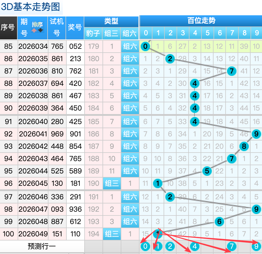 3D上期百位开出的1球,这个奖号1是一个小周期回补落位趋势也是一个比较好的符合百位上的落位点,先来看0号球这里还是有机会继续走出一个小号码落位的冷回补趋势,还有一个就是2号球这里的是一分边的落位形态的概率在这里的机会还是很好的要注意防守,然后7号球这里要注意是一个大码热回补落位趋势注意防守,9号球在百位上要注意可能有机会走常搭配的落位码 。