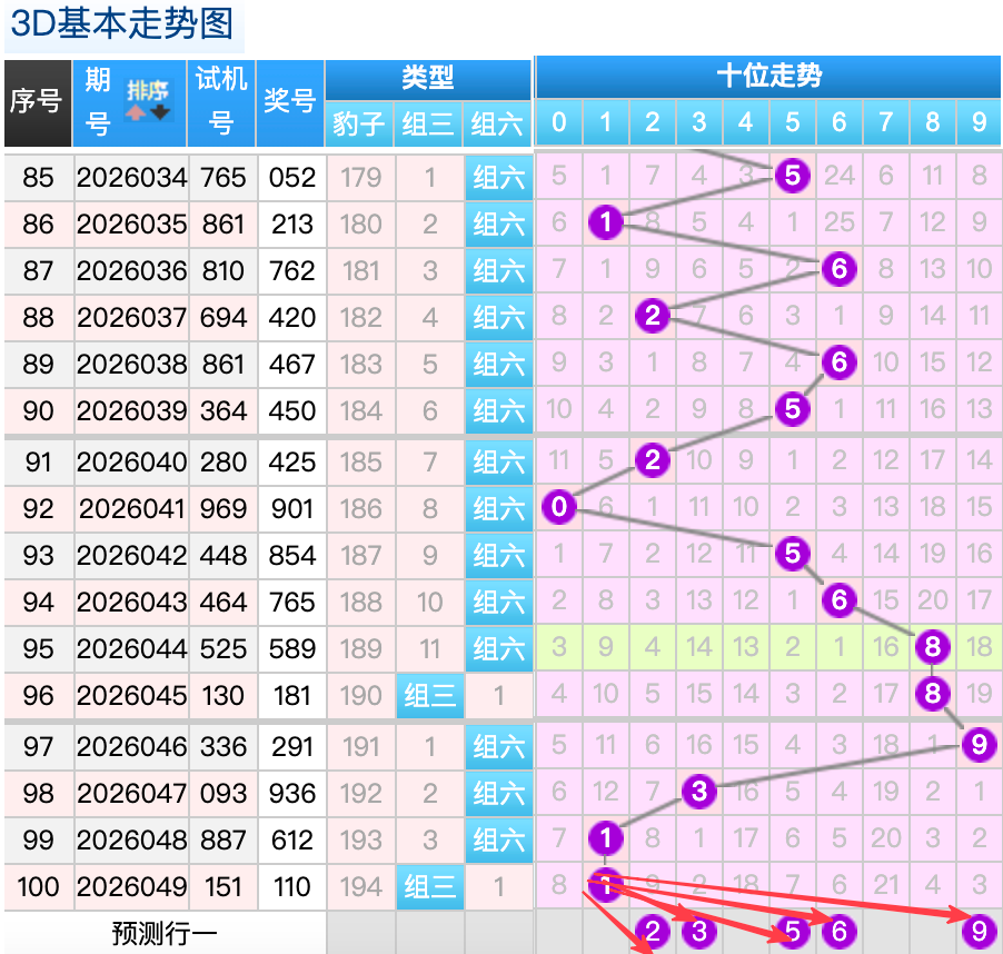 上期3D十位开出的奖号是1号,上期在十位上1号球这个号码是一个重码的回补落位点,本期来看2号和3号球在十位上要注意这两个号码是有机会继续顺着上期的1号球继续走出两个号码的落位趋势这里的两码是小号码注意防守就好了,9号球还是个常搭配8跨号的落位点,然后5号球还是一个小周期回补的落位形态注意防守,再来看6号球是小周期码回补这个点位注意防守。