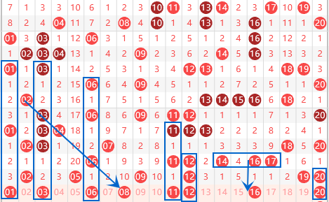 上期开出了02号数字,本期我们注意一下01 03号数字的出号情况,重点考虑一下03号数字,它和47号数字是一样的走势,这两个号码出一个应该是没有问题,我们要重点注意一下。本期的06号数字是属于121走势,本期我们要注意一下。本期的08号数字是属于遗漏10期的号码,本期遗漏10期的号码有三个,本期我们要注意出一个号码的情况。连号空一带号14 16 17由于上期没能够出重号,本期我们要注意落下号码的情况,重点关注一下14 16号数字的落号情况。