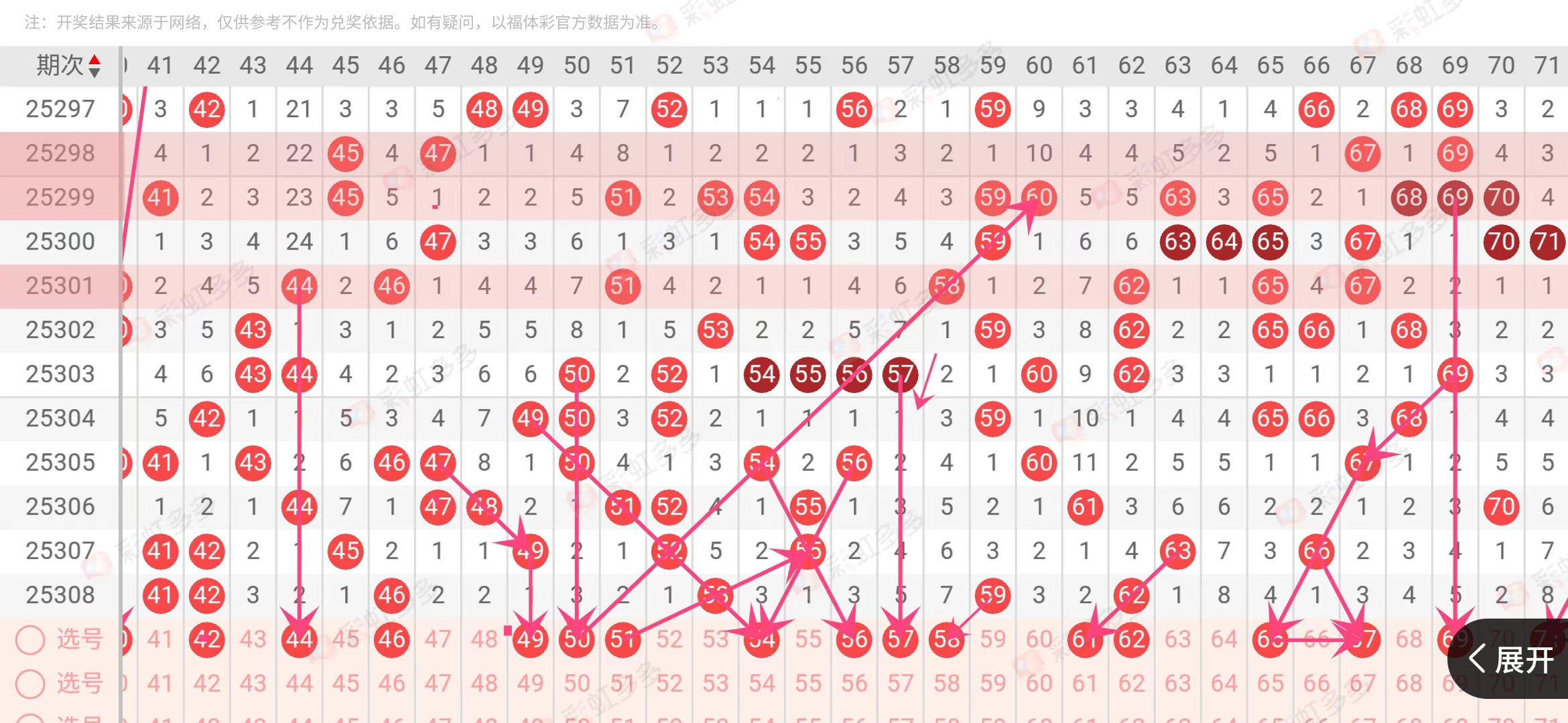 四区号码:第四区间龙头关注61三斜连重点防守关注62走重,中端关注64和67的三角形态,65是三斜连转转三斜连接力其次关注69空三空5的下落,7头重点关注71和73