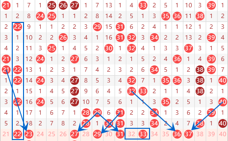 本期的22号数字我们要注意一下,它是属于312走势,出号机会还是有的。本期的29号数字是属于梅花号码,本期的梅花号码有三个,我们要注意出一个的情况。本期的32 33我们也是要注意出号情况的,本期有可能出现堵门情况的。本期的36号数字是属于空三中心号,44号数字也是孔三中心号,我们要注意出一个号码的情况。本期的37号数字我们做一下防守就行了,防守33 37同出的情况。