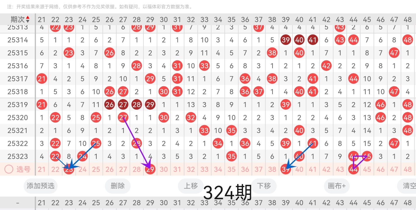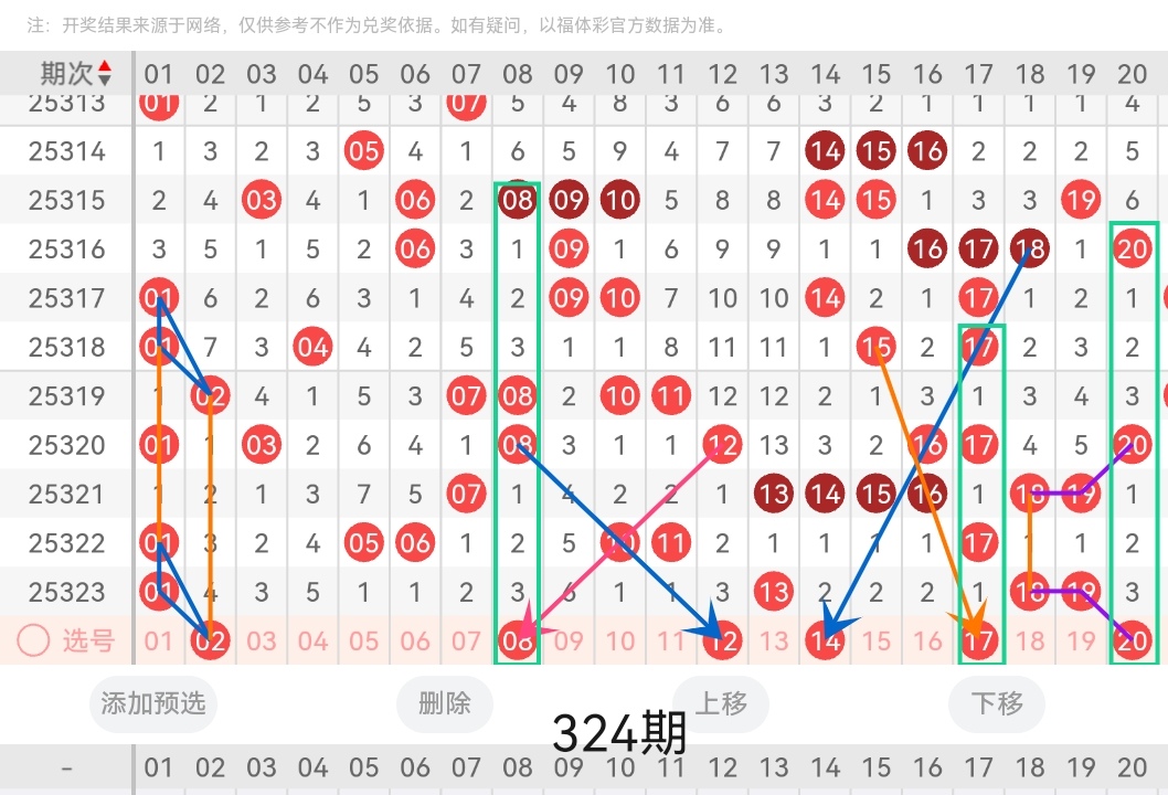 通过以上对上期的简单回顾,下面进入2025324期(下面简称本期)的选号分析: