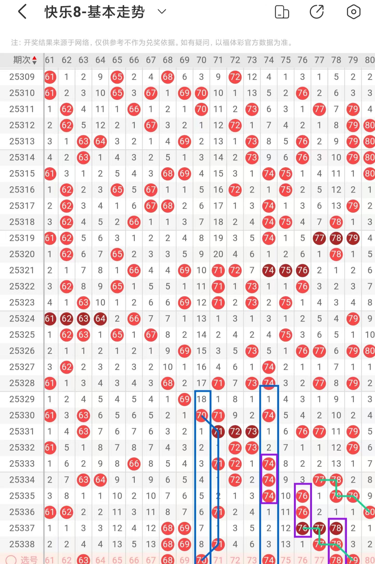 本期注意考虑一区间的减少落号,二区间的减少落号,三区间的增加落号,四区间的稳定落号,本期推荐关注05-07-13-16-18-21-27-33-37-40-43-48-52-56-60-68-70-74-78-79。