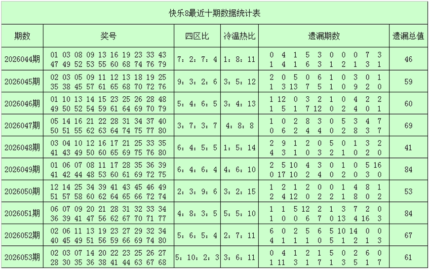 一、快乐8第2026054期奖号分析(定义:遗漏0-2期号码为热码,遗漏3-6期号码为温码,遗漏7期及7期以上号码为冷码,重码为上期开出奖号,邻码为上期没有出现,但与上期奖号差值为1的号码,例如上期开出奖号04,没有出现号码03和05,则本期03和05都为邻码,其它则为孤码。