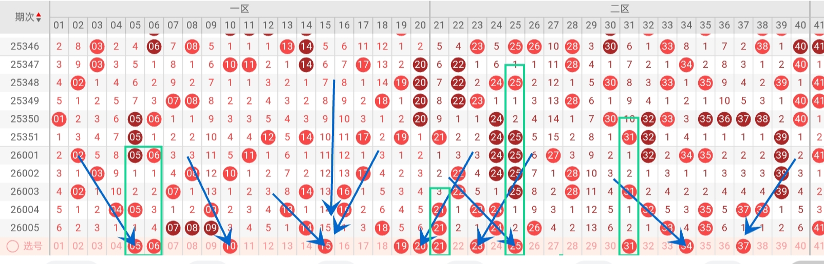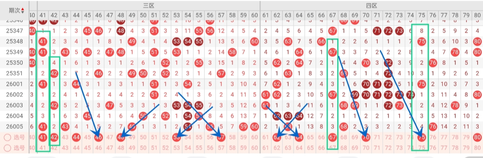 第2026006期福彩快乐8通过以下走势图及一二区间预测分析如下: