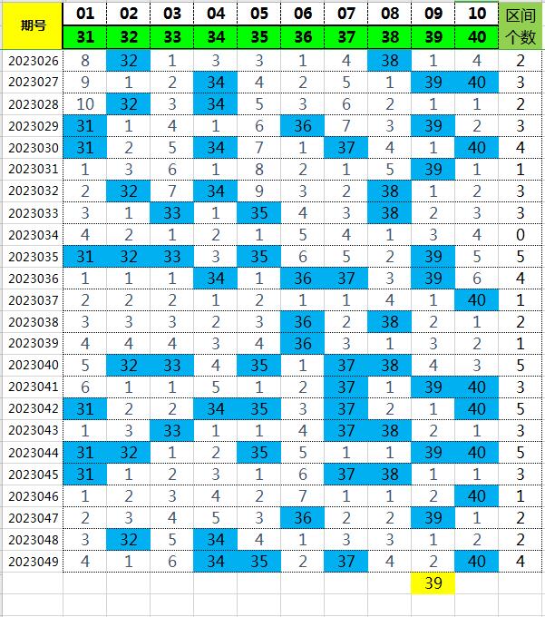 号码39当前遗漏2,前2次开出均是遗漏2,为三底对称等间周期。
