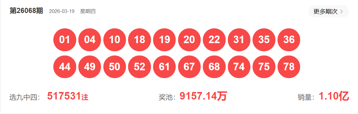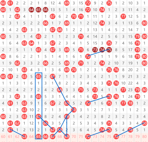 快乐8第2026066期61-80区域:推荐的第一个号码是63。近期当中我们看到60一下63走势非常多,还有就是65和63之间的关系,然后是65间隔2的对称走势。这个地方考虑65、66、67三个码也是一个3选2的走势。我们看到69.70往上给了68,昨天开出了68,然后上面跟间隔一给67,那么这个67选择直接开出,然后就是69号。它和68之间的经典三脚夹角关系,最后就是72,我们可以看到75开出给出72,75开出给出72的一个对称走势。然后就是76,一个80,间隔一给78,再间隔一给76的间隔一斜连。