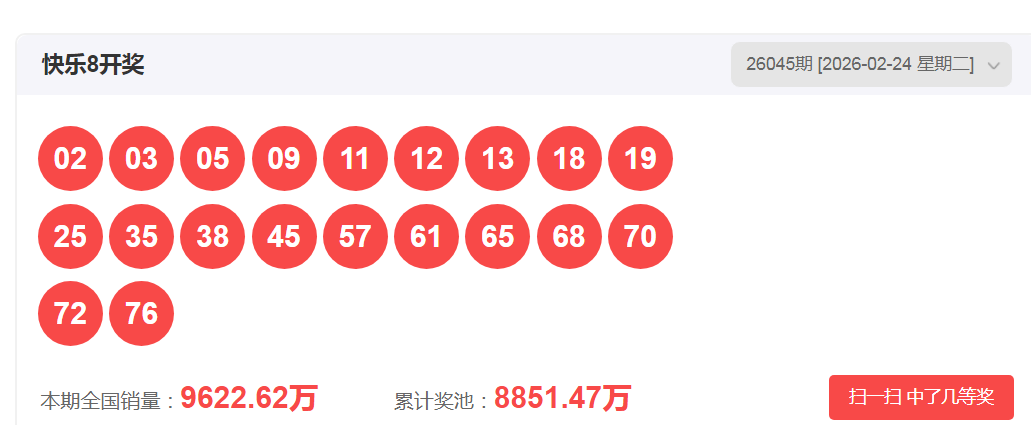 “专注快乐8,开心快乐吧!”您好,我是九尾锦鲤,有幸与您在这里相遇。上期(快乐8第2026045期)分析和推荐部分正确!今天组号上会继续努力!小车方案已精选优化,期望对您今天的选号、组号有所帮助。下面是我关于快乐八2026年第046期的走势研判分析及精选推荐。