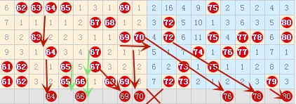 上期分析说把重点区域放在61-70号数字这个小区间,果然在上期这个小区间开出了6个号码,思路是对的。就是选号不太理想。上期提到41-60号数字区间的反弹现象。在上期又出现了反弹现象,这是第二次反弹现象,近期内还会出现一次大反弹现象,不过本期应会回到正常现象。好了,废话不多说,上分析吧。