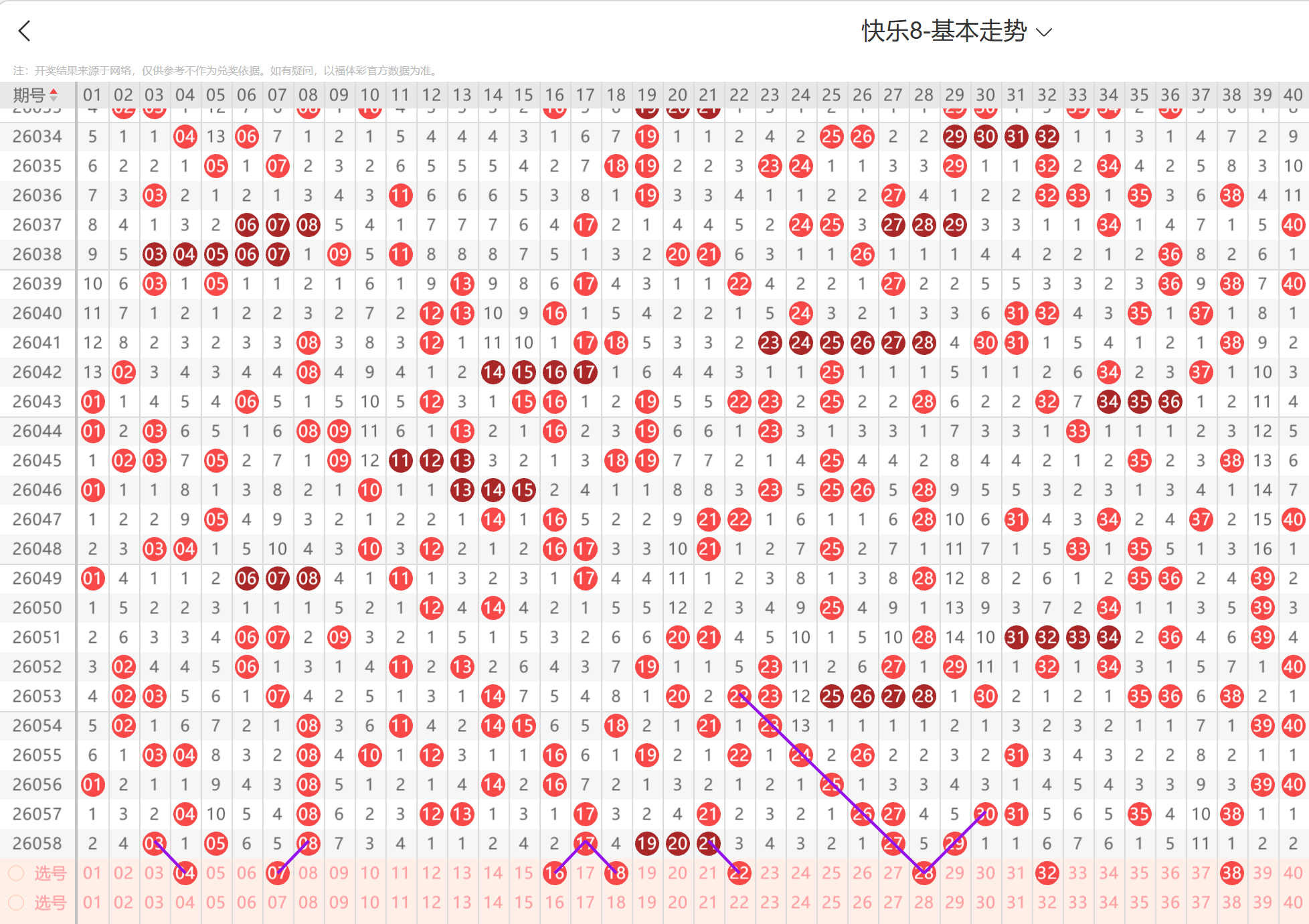 ### 第2026059期福彩快乐8三四区间走势分析