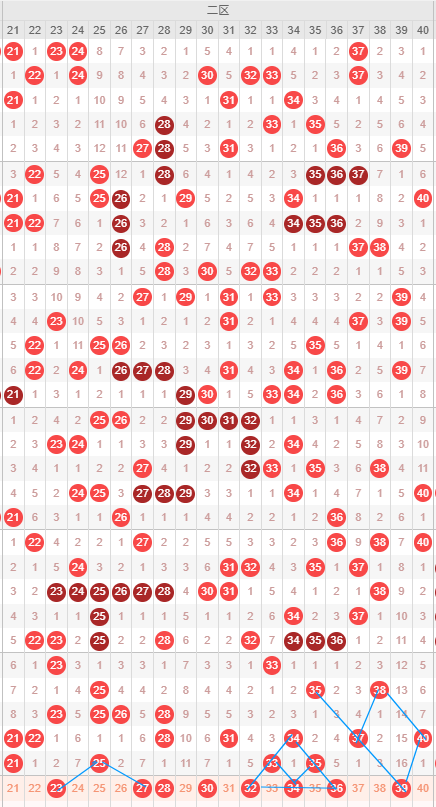 从近几期二区走势看,上期开了4码,温度稍微降低,本期二区号码有可能继续减少,关注2到4码;从二区整体来看,本期不怎么看好重号和连号,可以防一下一些冷号和温号;
