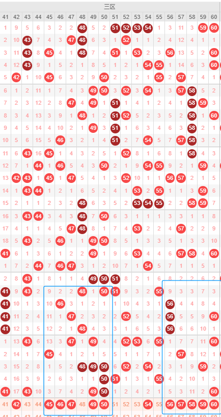 第三区间:41-47-52-55-58