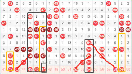 第三区间号码41-60,第三区间的话这一期应该很多人比较迷惑,就是是热还是冷。热区吧,开出来的全是冷号,冷区吧没走是上全是号码。究竟一个该怎么做才不会遗漏呢?老赫分析,这一期应该注意前半段,不知道个位同意不?尤其是42-47这一区域。