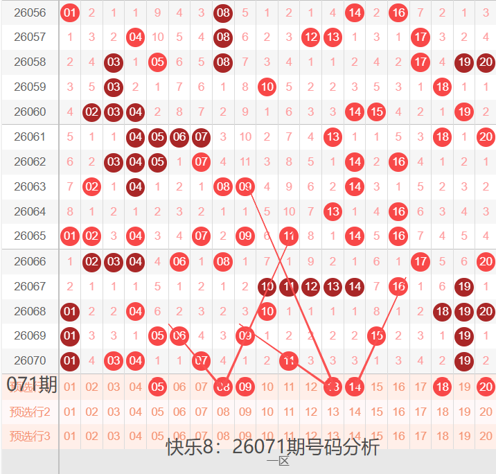 快乐8:26071期号码走势分析