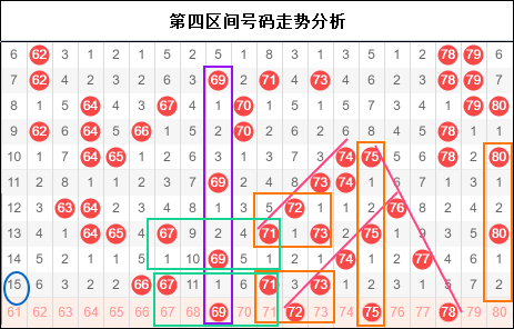 第四区间思路:四区确实是一个不按常理出牌的区间,老是爱作这种隔期开号的走法。从这一期来看走势上的确是不错,怕就怕又出幺蛾子的走势,在整个思路上出现偏移。所以在当前区间回归的走势下还是要慎重选择一下。