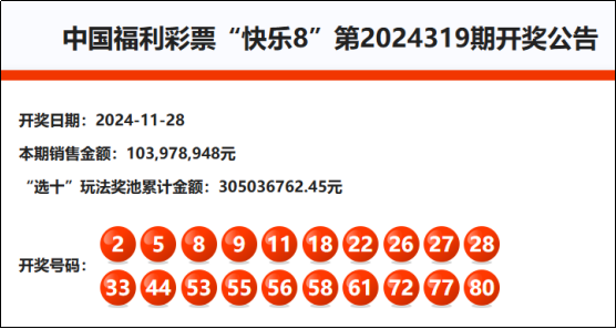 首先我们先来回顾快乐8第2024319期开奖号码: