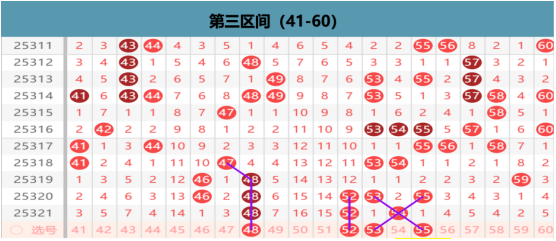 本期上期开出3码的区间布局,那么在本期我们主要考虑的就是隔号形态的大概率不空,优先考虑的还是分边的点位,第二个点就是考虑同路放空4期的回补点位的出号,现在的同路放空4期的位置上我们是要重点去考虑的,今天的43 45我们是要做择一的出号,其他的位置上我们要考虑的就是温冷的出号,今天区间的温冷号码有8个,那么今天在这个位置上我们考虑的就是选择2码左右的出号。那么其他的位置上就不是我们考虑的重点位置了。