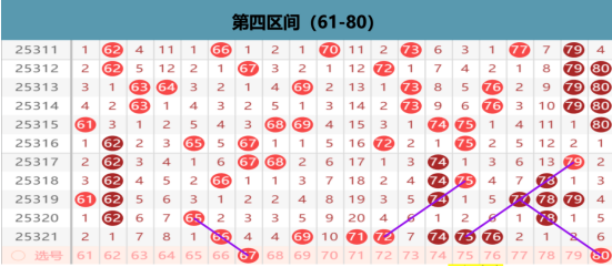 本期上期开出7码的区间布局,那么在本期我们考虑的就是同路的出号重点了,66 69 72 75的位置上我们还是和一区考虑的一样,那么在本期我们还是要考虑一码的走重的可能性的出号,做一重一分两放的形态出号,第二点考虑的就是同尾的出号,区间在同尾的点位上大概率也是不空的,那么在空位的位置上我们主要考虑的还是同形态的放空的出号点位上,62 78的同形态的放空下方的择一回补点位,那么其他的位置就不是我们考虑的重点出号位置了。