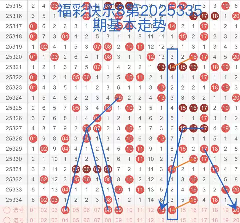 下面是我对2025335期福彩快乐8的分析和预判,希望通过我的分析能让大家今晚大满贯!福彩快乐8上期开奖号码如下图