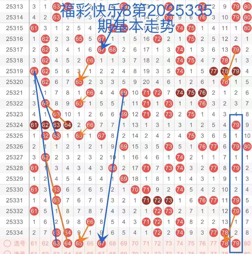 25335期福彩快乐8,走势综合分析(本期一胆参考65)