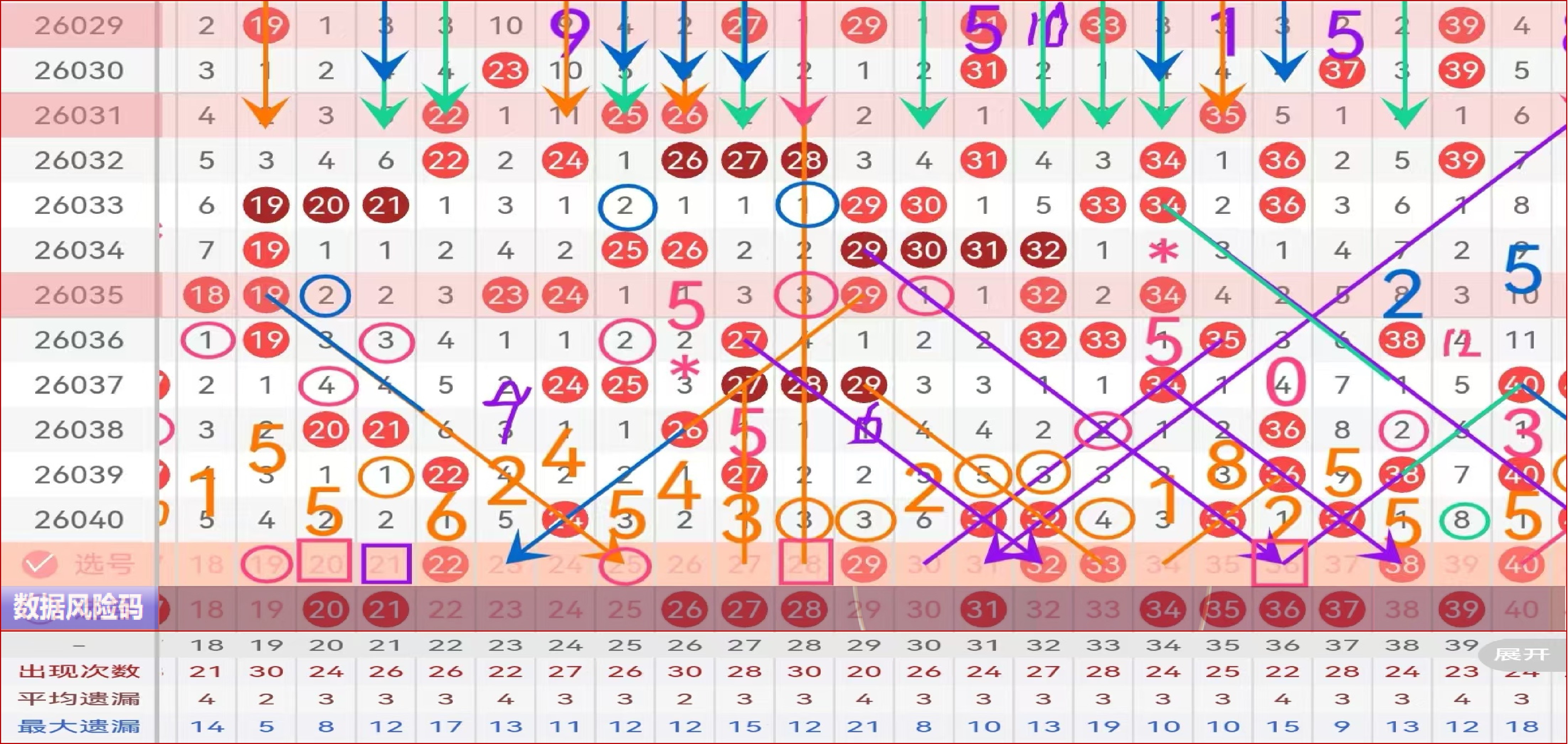 区间推荐主做号码22 29 32 33 38 40 防守号码23 24 30 34;