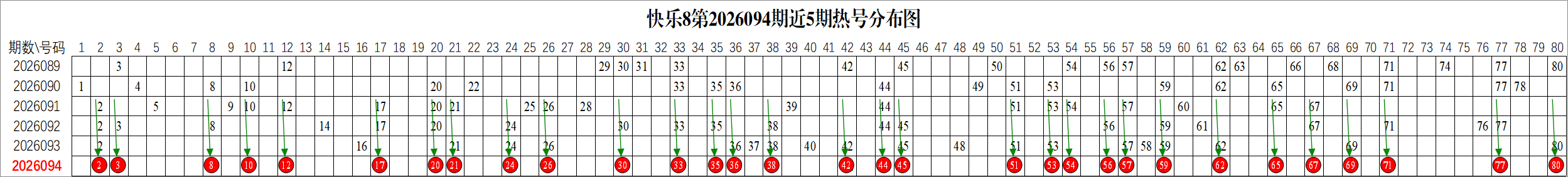 2026093期开出的号码尾数为:2,6,1,4,6,6,7,8,0,2,5,8,1,3,7,8,9,2,9,0。统计一下个数,从多到少的顺序为:2680179345,参考“缺什么补什么”的想法,以中间6个尾数来看本期的号码。