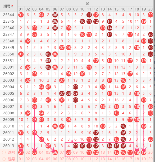 一区间打底号是01.03.06.10.12.13.15.16.19.中参考2-3码开出机会,