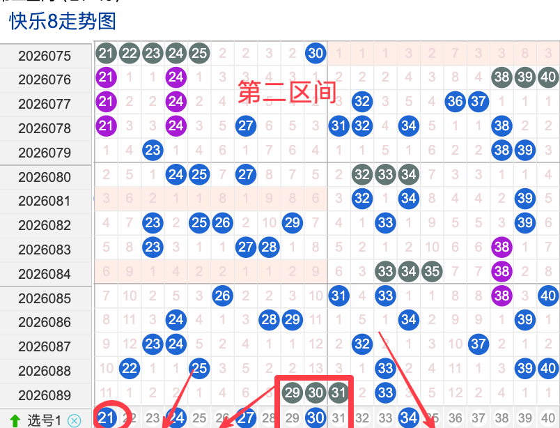 上期二区开出4个奖号(22.25.33.39.40)上期回顾二区开出4个奖号二区间在上期落位同比前期的话呈现了一个递减落位趋势,先来看本期号码21整体活跃度较冷,在近 30 期里有一定的间歇性出现,不是每期都开,近期整体走势还不是很稳定。号码24近期热度较热,间隔性整体比较热,说明其在当前阶段活跃度较热注意防守。号码34近期活跃度较热有一定的间歇性近期整体走势相对还是很稳定有特别明显的冷热趋势变化,号码30近30期内活跃度较冷,没有明显的连续出现形态走势,整体表现比较冷。