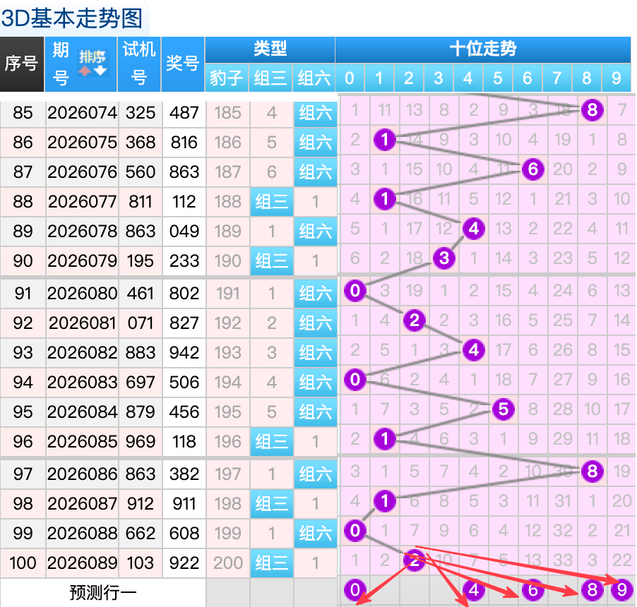 上期3D十位开出的奖号2号,上期在十位上2号球这个号码是一个冷号间隔7期回补码的落位点,本期来看0号在十位上要注意这个号码是有机会继续走出热号折返位落位的趋势这里的号码回补形态注意防守就好,再来6号球这个点位注意防守走出4跨号码的落位趋势。9号球这个最大冷号的落位回补要注意参考。4号球要注意走出2跨等差号码的落位回补。