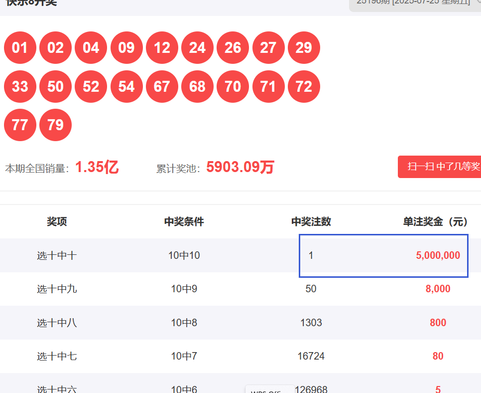 大家好,我是一起彩,作者九九锦鲤。今天是2025年7月26,周六是快乐8游戏第197期开奖。那么首先回顾一下,196期选十中十全国中出一注一等奖,单注奖金500万