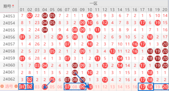 下图为01-20号数字区间走势分析图:
