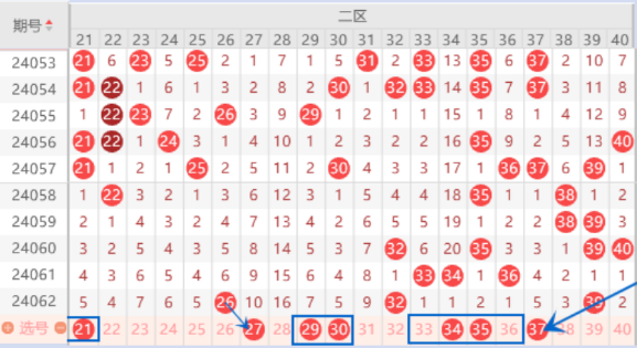 下图为21-40号数字区间走势分析图: