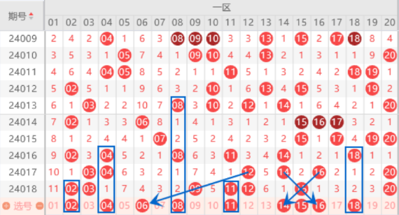 上期开出了02 03号数字的连号,本期我们注意一下出一个重号的情况,重点关注一下02号数字的出号情况。本期的04 14号数字我们注意一下出号情况,这里本期应该会出一个号码。本期的08号数字是属于空一对称号码,出号机会也是有的,我们要注意一下。上期开出了连号空一带号09 11 12号数字的出号情况,本期我们注意一下出一个重号的情况,重点关注一下11 12号数字出重的情况。本期的14 15号数字是属于交叉对称号码,本期的28 30号数字也是如此,所以本期这里应该是要有号码的,我们需要注意一下。