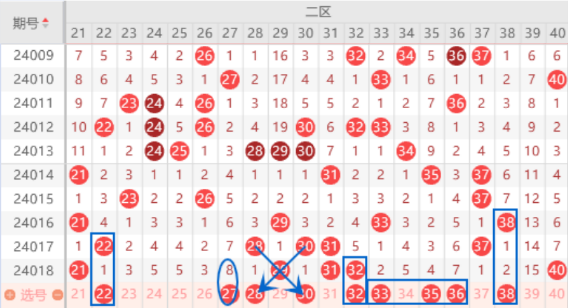 本期的22号数字是属于三斜连号码,出号机会还是有的,可以防守一下。本期的27号数字是属于遗漏8期的号码,本期遗漏8期的号码有4个,本期最少是要出一个号码的,我们要注意一下。上期开出了连号空一带号29 31 32号数字,本期我们注意一下出一个重号的情况。本期的36号数字是属于遗漏7期的号吗,本期遗漏7期的号码有6个号码,出一个号码的是没有问题的,我们可以关注一下。