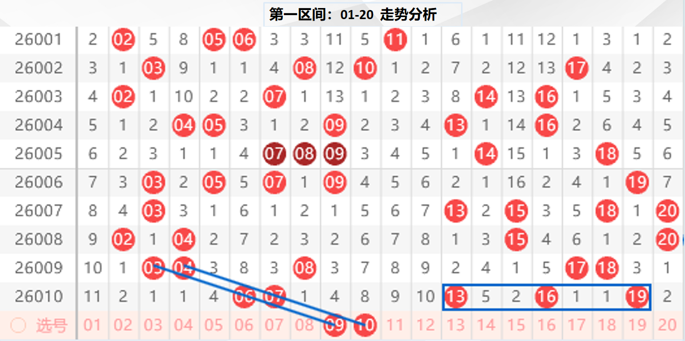 一区分析:【01-20】(走势图标注号码非小黄车大底,请谨慎参考,具体思路将在直播间分享讨论)