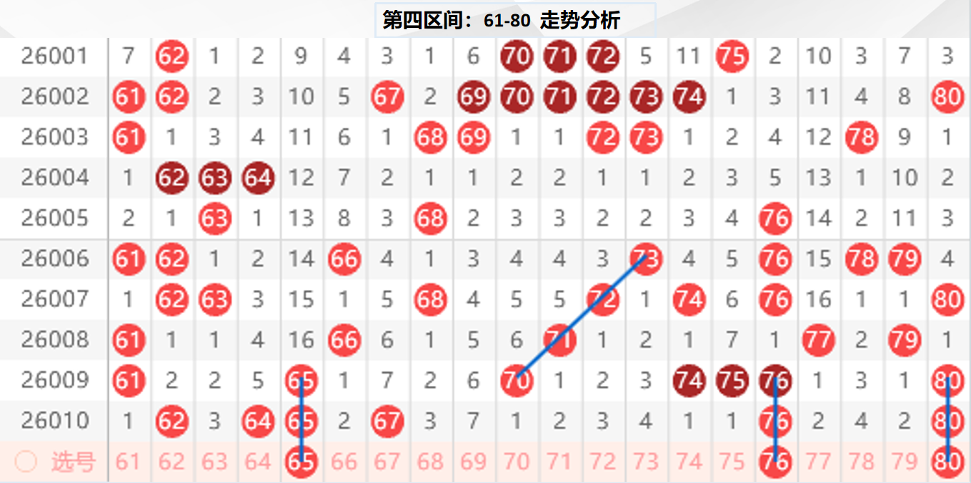 四区分析:【61-80】(走势图标注号码非小黄车大底,请谨慎参考,具体思路将在直播间分享讨论)