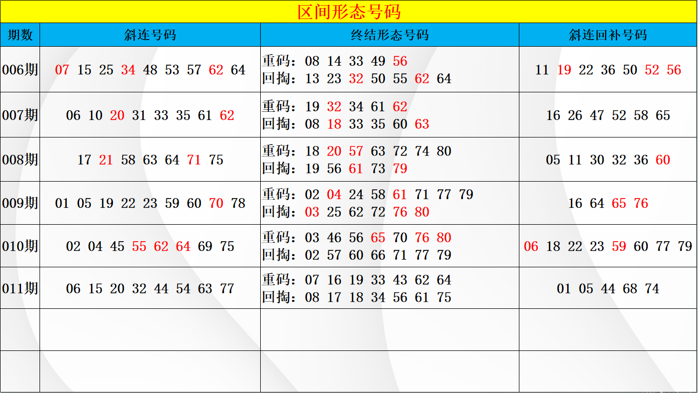 上期四区的整体开号中在区间的重码形态上继续保持着接力出号上的重点,号码在双同尾的出号模式上保持着一重一分一放的开号模式,以三区的复制形态上做判断重点,出号点位还是要集中考虑在65 76 80三码中,且也是区间的重码同形态,对应区间和周期上的开号位置,分边中本期还是要重点关注,考虑在64 66 75 77 79五码中判断选择,同时要注意三重码连续三期中断,接力多重周期上三码中也是有机会开出一码的回补,判断出号形态上依然是采用一重一分一放空的模式布局。而在期间的空位中本期也要重点关注小周期上的接力重点,对应号码在70 71 72 73 74 78六码中,其中以断头斜连下方做出号上的重点判断,对应点位在70 71 72 73四码中开号的机会比较大,可重点考虑接力周期上择一的布局选择。