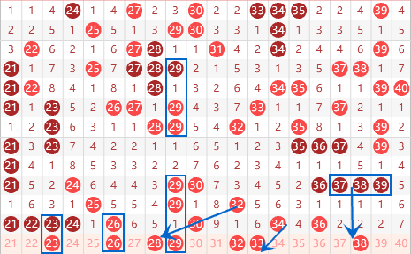 下图为21-40号数字区间走势分析图: