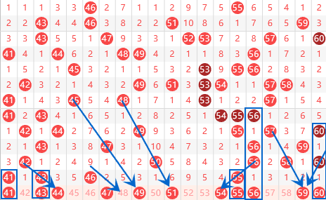 下图为41-60号数字区间走势分析图: