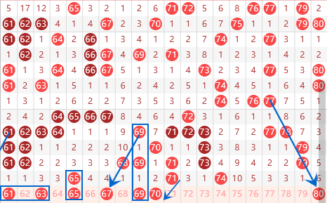 下图为61-80号数字区间走势分析图: