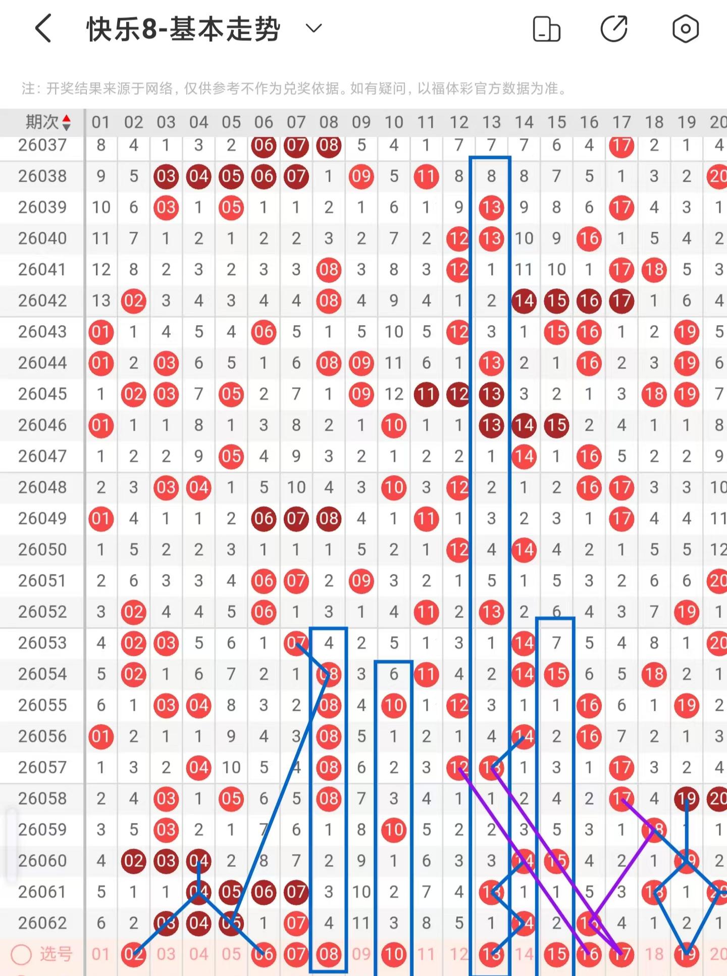 快乐八2026063期出号分析,上期区间分析选二复式中