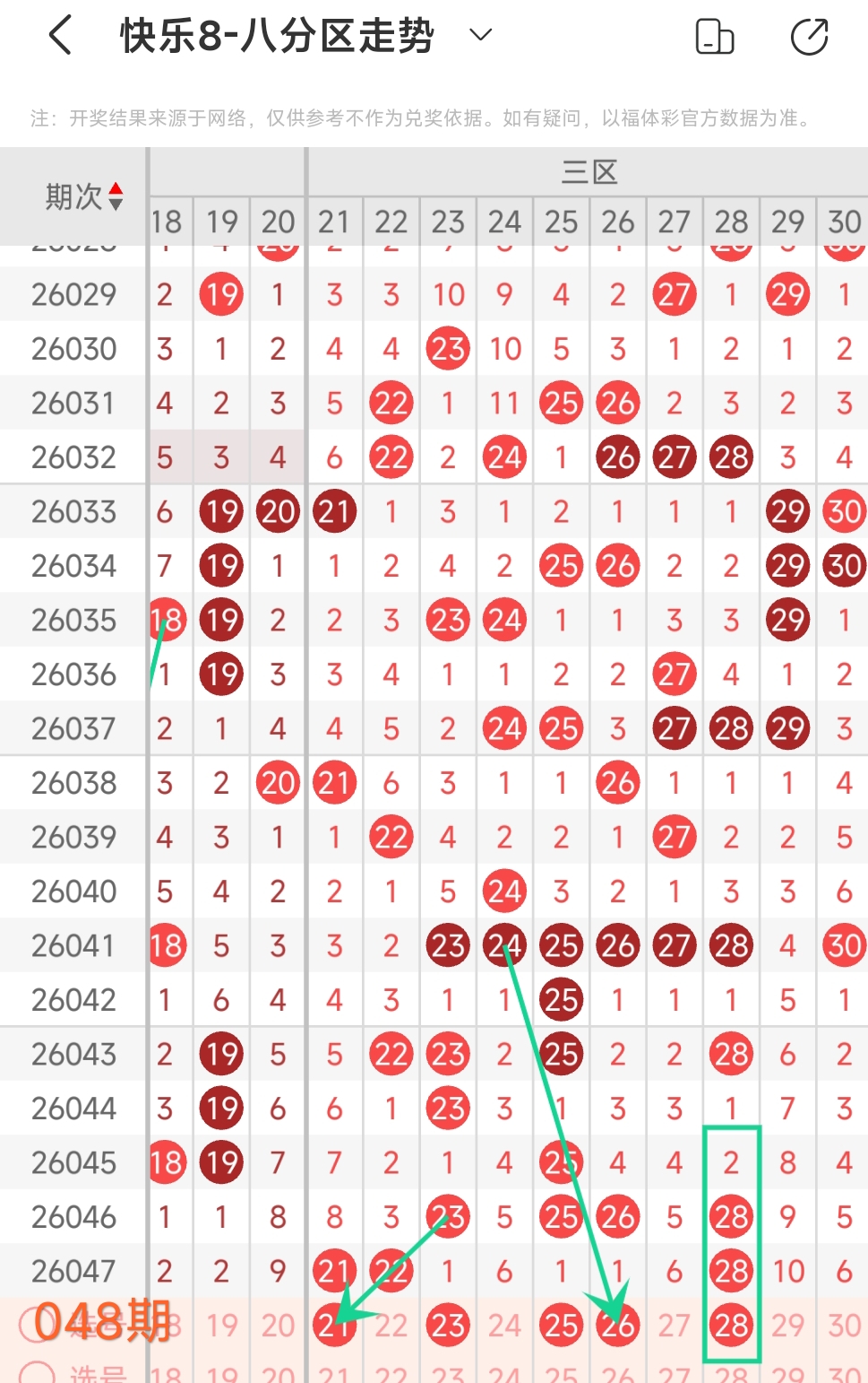 上期三区开出21 22 28这3个号码,本期考虑3个。